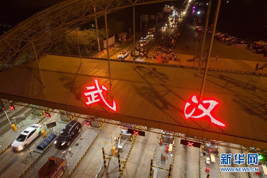4月8日凌晨,車輛通過(guò)武漢西高速收費(fèi)站(無(wú)人機(jī)拍攝)。 新華社記者 沈伯韓 攝
