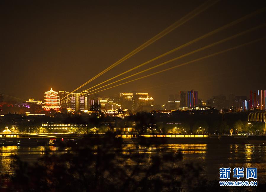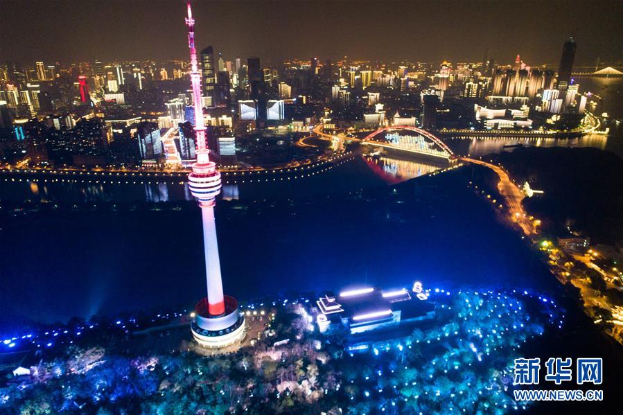 4月8日零時(shí)起,武漢市正式解除離漢離鄂通道管控措施,全市景觀照明開啟(無人機(jī)拍攝)。新華社記者程敏攝