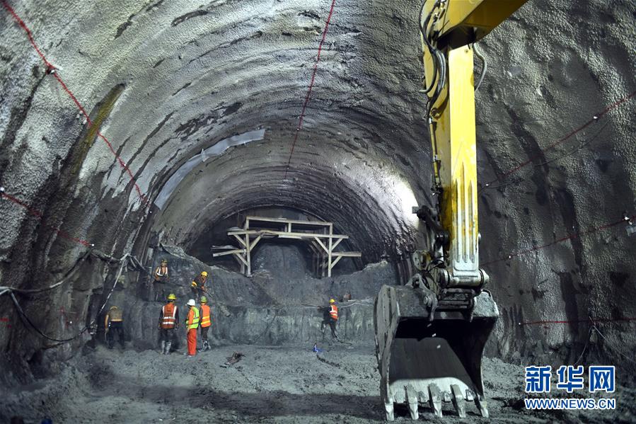 中鐵隧道局承建的玉溪新平隧道內(nèi),工人在掌子面進行扒渣作業(yè)(4月11日攝)。新華社記者秦晴攝