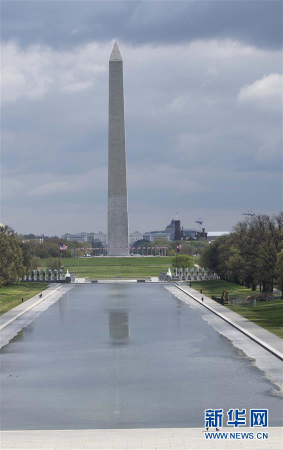 4月1日,在美國首都華盛頓,一名男子在華盛頓紀(jì)念碑附近跑步。新華社記者劉杰攝