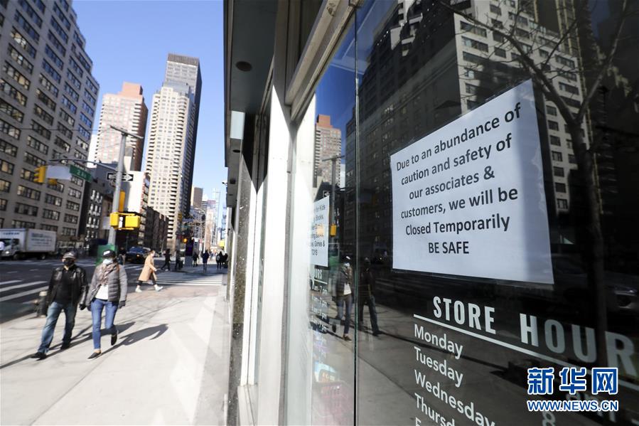 3月21日,在美國紐約第二大道,一家店鋪貼出閉店告示。新華社記者王迎攝
