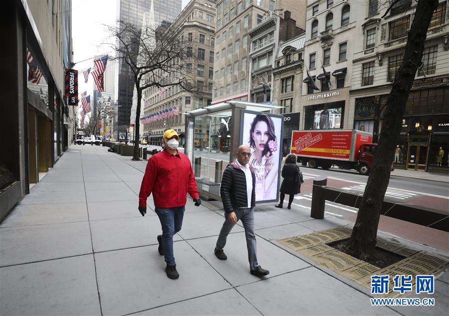 3月19日,在美國(guó)紐約曼哈頓,行人走在空曠的第五大道上。新華社記者王迎攝
