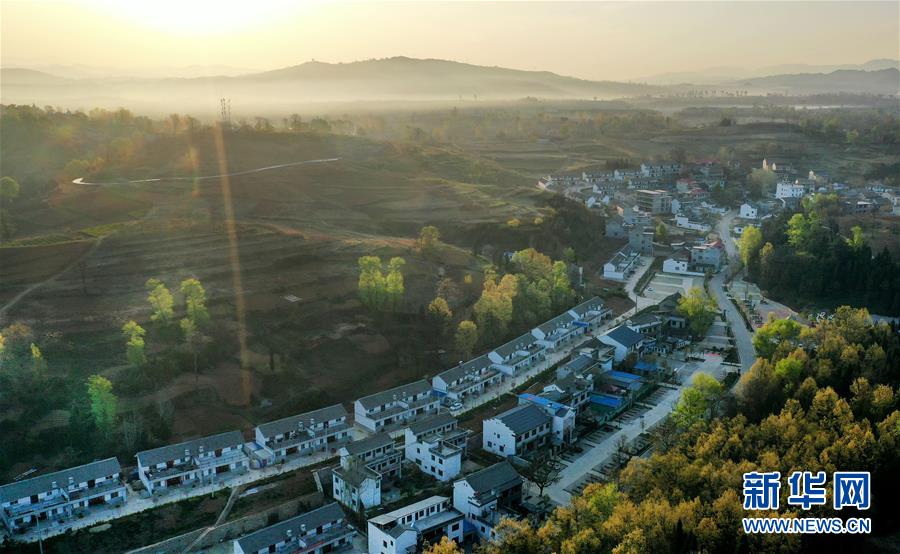 4月13日清晨時(shí)分拍攝的洛南縣城(無(wú)人機(jī)照片)。新華社記者陶明攝