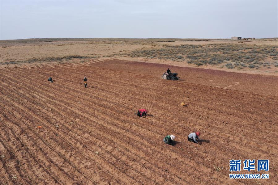 月15日,農(nóng)民在杭錦旗道勞呼都格嘎查的農(nóng)田里栽種紅蔥苗。春種時節(jié),在內蒙古鄂爾多斯市杭錦旗道勞呼都格嘎查,農(nóng)民忙著播種紅蔥。在鄂爾多斯高原種植的紅蔥耐旱耐寒,具有較好的經(jīng)濟效益。新華社記者徐欽攝