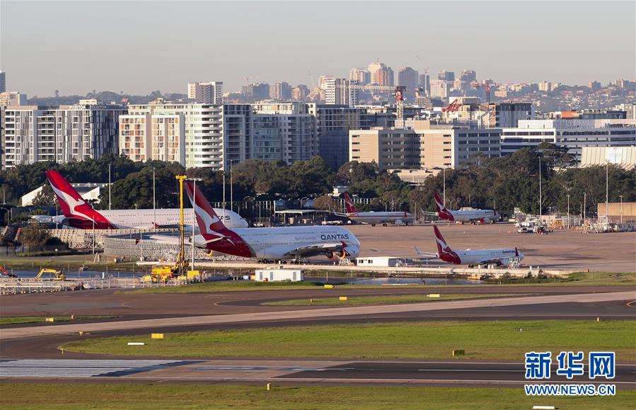 4月15日,在澳大利亞悉尼機(jī)場(chǎng),多架澳洲航空客機(jī)停泊在維修區(qū)。新華社記者白雪飛攝