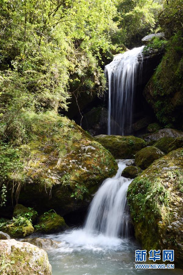 地洞河天坑底部的一處瀑布。新華社張博文攝