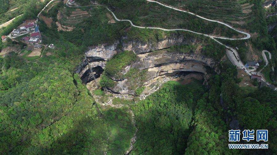 這是在陜西省漢中市寧強(qiáng)縣火石子村用無(wú)人機(jī)拍攝的地洞河天坑。新華社張博文攝