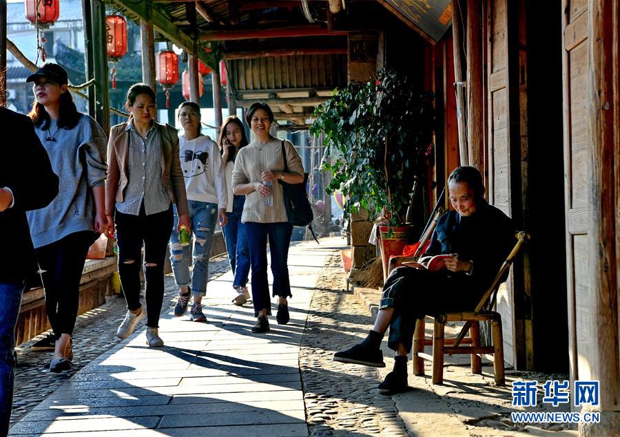 游客在武夷山下梅村游覽(11月5日攝)。福建省武夷山市下梅村是“中國(guó)歷史文化名村”,這里歷史悠久,人文薈萃,至今保存著70余幢明清時(shí)代的古民居。人工運(yùn)河穿村而過(guò),古民居、涼亭、古街等構(gòu)成了別具特色的江南水鄉(xiāng)風(fēng)景。新華社記者馬平攝