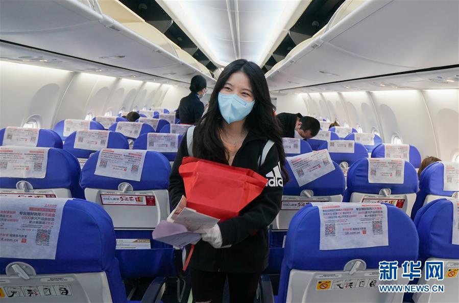 4月8日,在武漢天河國(guó)際機(jī)場(chǎng),東方航空MU2527航班旅客登機(jī)。新華社記者程敏攝