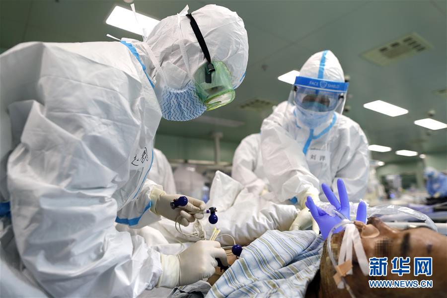 4月24日,在位于武漢的華中科技大學(xué)同濟醫(yī)學(xué)院附屬協(xié)和醫(yī)院西院,醫(yī)務(wù)人員趙鑫(左)在為一名核酸檢測結(jié)果轉(zhuǎn)陰的新冠肺炎病人做檢查。新華社記者沈伯韓攝