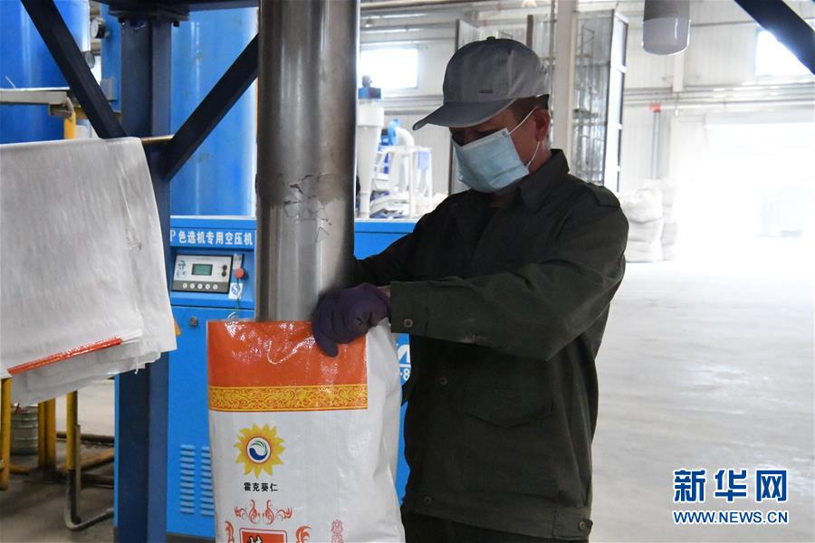 4月26日,中哈霍爾果斯國(guó)際邊境合作中心中方配套區(qū)內(nèi)的霍爾果斯霍克葵仁商貿(mào)有限公司生產(chǎn)車間內(nèi),員工將產(chǎn)品裝袋。3月以來(lái),在做好疫情防控的前提下,新疆霍爾果斯“口岸經(jīng)濟(jì)”加快復(fù)蘇,每天出入其中的商販和游客逐漸增多。與此同時(shí),位于中哈霍爾果斯國(guó)際邊境合作中心中方配套區(qū)內(nèi)的各家企業(yè)正抓緊時(shí)間生產(chǎn)。新華社記者顧煜攝