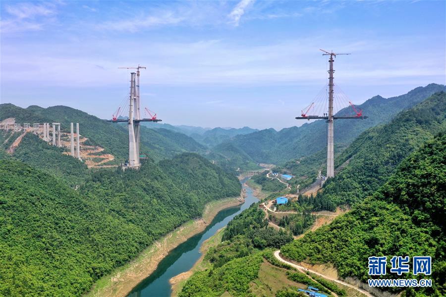 這是建設(shè)中的遵余高速湘江大橋(4月26日攝,無人機(jī)照片)。近日,由中鐵廣州局承建的貴州遵余高速湘江大橋工程在做好疫情防控的同時(shí),全力恢復(fù)生產(chǎn)建設(shè)。目前工程進(jìn)展順利,正在進(jìn)行主橋鋼梁架設(shè),預(yù)計(jì)將于8月底合龍。據(jù)了解,遵余高速湘江大橋橋梁全長1700余米,主跨560米。新華社記者劉續(xù)攝