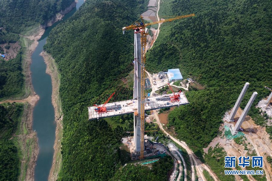 這是建設中的遵余高速湘江大橋(4月26日攝,無人機照片)。近日,由中鐵廣州局承建的貴州遵余高速湘江大橋工程在做好疫情防控的同時,全力恢復生產建設。目前工程進展順利,正在進行主橋鋼梁架設,預計將于8月底合龍。據(jù)了解,遵余高速湘江大橋橋梁全長1700余米,主跨560米。新華社記者劉續(xù)攝