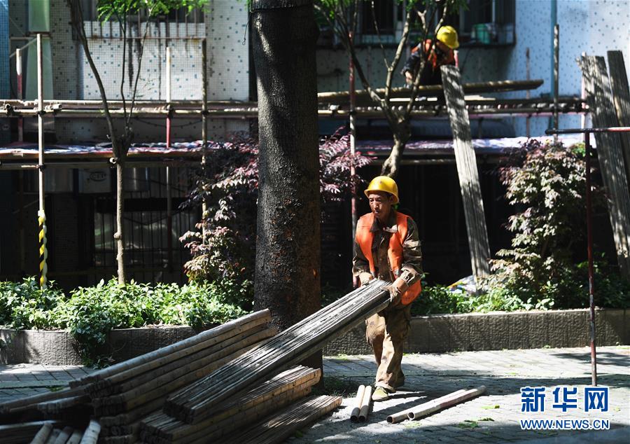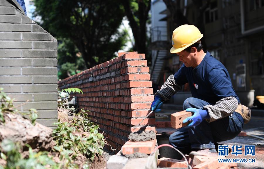 4月26日,工人在渝中區(qū)大溪溝街道雙鋼路社區(qū)改造提升項(xiàng)目施工現(xiàn)場(chǎng)作業(yè)。近段時(shí)間以來,重慶市渝中區(qū)大溪溝街道加快推進(jìn)轄區(qū)內(nèi)老舊小區(qū)改造提升工作,從環(huán)境衛(wèi)生、房屋管理及養(yǎng)護(hù)、安防及車輛管理、綠化管理等方面進(jìn)行綜合改造提升,以增強(qiáng)社區(qū)居民的幸福感、獲得感、安全感。新華社記者王全超攝