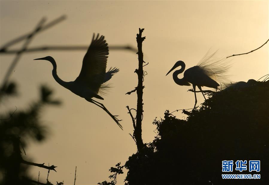 象山森林公園內(nèi)的白鷺(4月26日攝)。近日,在江西省南昌市新建區(qū)象山森林公園內(nèi),已安家筑巢的大批鷺鳥正陸續(xù)孵化后代,一派生機(jī)勃勃的景象。新華社記者彭昭之?dāng)z