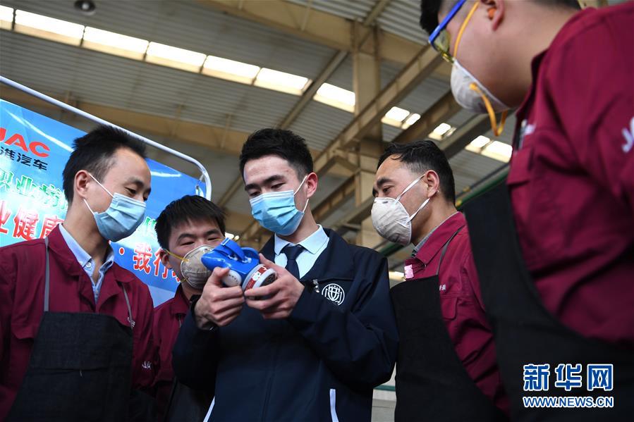 4月27日,常青街道凌大塘社區(qū)邀請專業(yè)人員到轄區(qū)企業(yè)車間為工人講解防護(hù)設(shè)備的使用方法。當(dāng)日,安徽省合肥市包河區(qū)常青街道開展健康講座、職業(yè)病防護(hù)宣傳等系列活動,提高勞動者的自我防護(hù)意識和能力,迎接“五一”國際勞動節(jié)。新華社記者劉軍喜攝