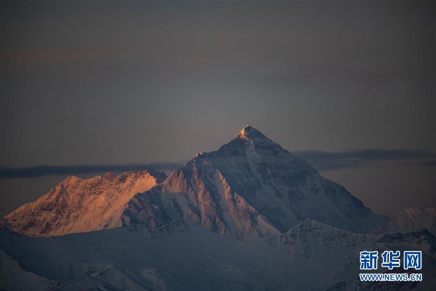 日出時分,在加烏拉山口拍攝的珠峰(4月25日攝)。春夏之交,“世界之巔”珠穆朗瑪峰分外美麗。拂曉之際,朝霞映照珠峰,“萬山之宗”雄壯而柔和。新華社記者普布扎西攝