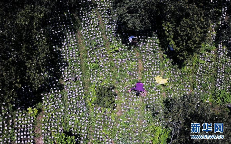 村民在劍河縣岑松鎮(zhèn)巫亮村林下仿野生食用菌基地采摘木耳(4月27日攝,無(wú)人機(jī)照片)。近年來(lái),貴州省黔東南苗族侗族自治州劍河縣充分利用林下土地培育木耳,既不耽誤林木生長(zhǎng),又發(fā)展了食用菌產(chǎn)業(yè)。目前,該縣采取“龍頭企業(yè)+合作社+貧困戶”的合作模式,大力推廣林下木耳種植,帶動(dòng)農(nóng)民增收。新華社記者楊文斌攝