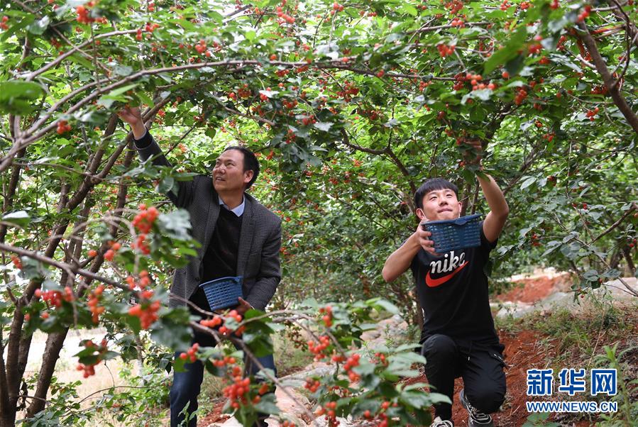 4月28日,兩名游客在云南省富民縣赤鷲鎮(zhèn)普橋村果園摘櫻桃。云南省富民縣赤鷲鎮(zhèn)大力發(fā)展特色種植業(yè),全鎮(zhèn)種植櫻桃4000余畝,幫助當?shù)剞r(nóng)民增收致富。新華社記者楊宗友攝