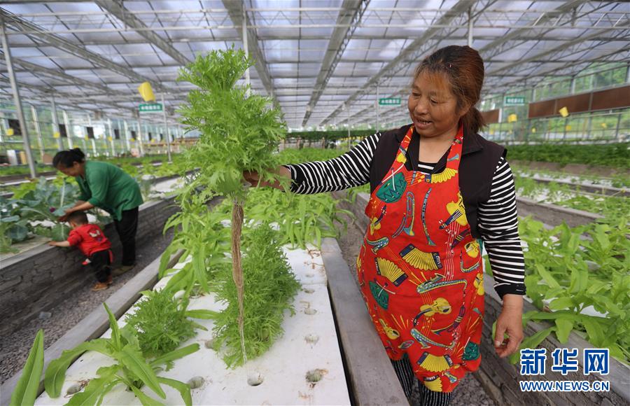 4月29日,珙縣三合村的村民在現(xiàn)代農業(yè)產(chǎn)業(yè)示范園區(qū)收獲無土栽培的蔬菜苦菊。新華社記者江宏景攝