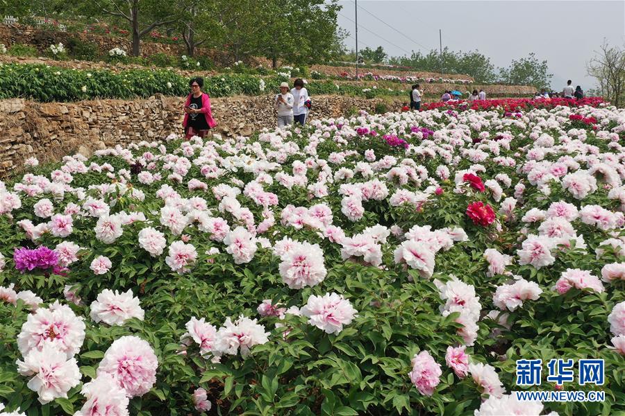 5月2日,游客在河北省唐山市遷西縣東蓮花院鄉(xiāng)花鄉(xiāng)果巷特色小鎮(zhèn)牡丹園內(nèi)參觀游覽(無人機照片)?!拔逡弧奔偃掌陂g,人們以多種方式放松心情、享受假日。新華社發(fā)(王愛軍攝)