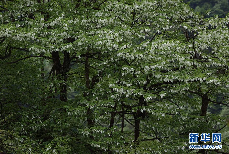 位于四川省滎經(jīng)縣的龍蒼溝國(guó)家森林公園里,鴿子花盛開(5月4日攝)。目前,位于四川省大相嶺山脈東麓北坡的龍蒼溝國(guó)家森林公園里,約8萬(wàn)畝鴿子花盛開,猶如鴿群展翅欲飛。鴿子花即珙桐花,珙桐是珍稀植物,有著植物“大熊貓”“活化石”之稱,是國(guó)家一級(jí)保護(hù)植物,也是著名的觀賞植物。2008年,華中農(nóng)業(yè)大學(xué)、湖北民族學(xué)院和四川省縈經(jīng)縣林業(yè)部門聯(lián)合對(duì)龍蒼溝森林公園的珙桐進(jìn)行了種群生態(tài)學(xué)調(diào)查,發(fā)現(xiàn)珙桐在這里共分布約8萬(wàn)畝,集中成片分布近4萬(wàn)畝。珙桐面積之大、株數(shù)之多、密度之高,十分罕見(jiàn)。新華社記者 江宏景 攝