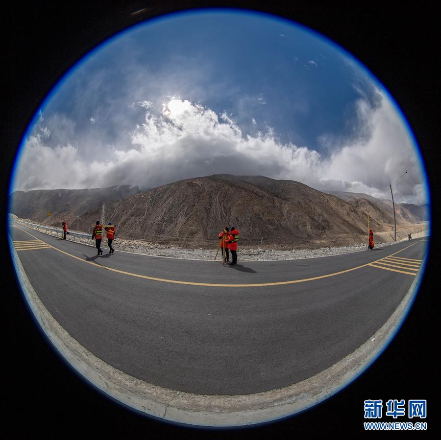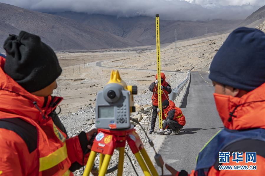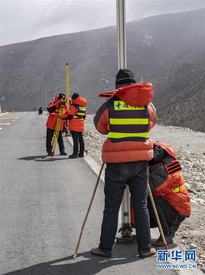 國測一大隊隊員在西藏定日縣曲當鄉(xiāng)境內(nèi)進行水準測量(4月18日攝)。水準測量是一種利用提供水平視線的儀器(如水準儀、水準標尺),測定地面不同點之間的高差,并以此推算高度的一種方法,是經(jīng)典大地測量的重要技術(shù)之一。在目前正在進行的2020珠峰高程測量中,部分國測一大隊隊員承擔了水準測量的任務(wù)。新華社記者普布扎西攝