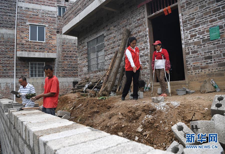 唐莉(右二)在平樂(lè)縣張家鎮(zhèn)老埠村貧困戶陶仁桂家查看無(wú)障礙設(shè)施改造項(xiàng)目建設(shè)進(jìn)展(5月4日攝)。新華社記者周華攝