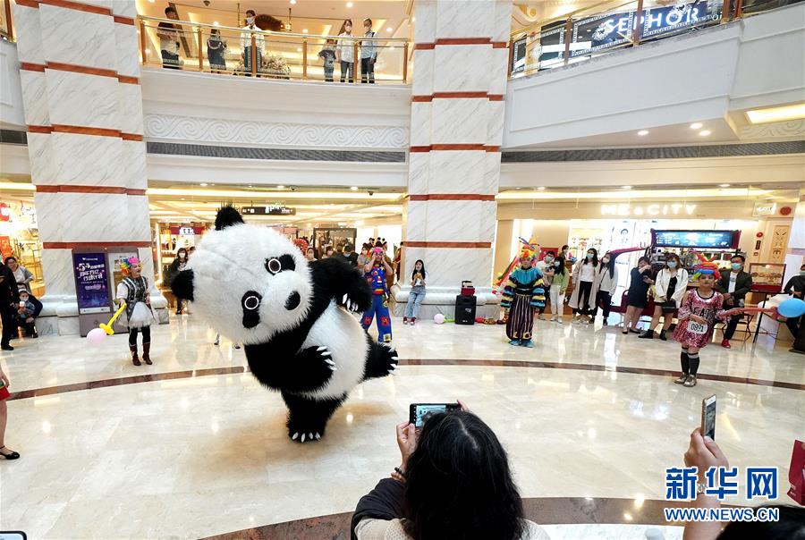 5月5日,大熊貓人偶在上海環(huán)球港商場為“五五購物節(jié)”營造氣氛。5月4日晚,上海首次啟動大規(guī)模商業(yè)促銷活動“五五購物節(jié)”,多家在線新經濟企業(yè)參與,通過線上流量優(yōu)勢反哺線下賣場,實現(xiàn)電商與實體零售融合互動,激活消費潛力、驅動消費復蘇。據(jù)“上海發(fā)布”的消息,截至5日14時12分,“五五購物節(jié)”上海地區(qū)消費支付總額已超100億元。新華社記者陳飛攝