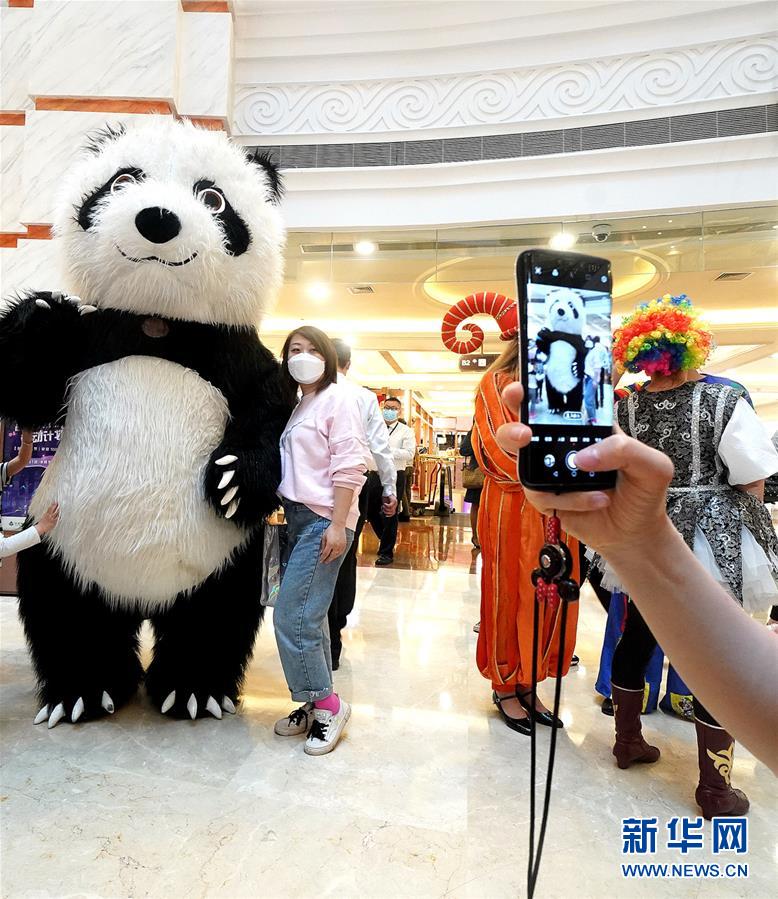 5月5日,顧客在上海環(huán)球港商場(chǎng)與大熊貓人偶合影。5月4日晚,上海首次啟動(dòng)大規(guī)模商業(yè)促銷(xiāo)活動(dòng)“五五購(gòu)物節(jié)”,多家在線新經(jīng)濟(jì)企業(yè)參與,通過(guò)線上流量?jī)?yōu)勢(shì)反哺線下賣(mài)場(chǎng),實(shí)現(xiàn)電商與實(shí)體零售融合互動(dòng),激活消費(fèi)潛力、驅(qū)動(dòng)消費(fèi)復(fù)蘇。據(jù)“上海發(fā)布”的消息,截至5日14時(shí)12分,“五五購(gòu)物節(jié)”上海地區(qū)消費(fèi)支付總額已超100億元。新華社記者陳飛攝