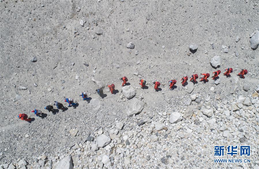 5月6日,登山隊員們向更高海拔進(jìn)發(fā)(無人機照片)。新華社記者晉美多吉攝