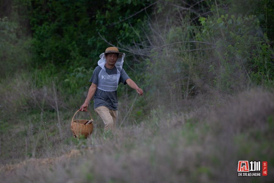 2020年5月3日,湖北省襄陽市,南漳三道河水庫小島養(yǎng)蜂人趙德海養(yǎng)的蜜蜂為土蜂(又稱中華蜜蜂),不用向其他養(yǎng)蜂人一樣轉(zhuǎn)場,可以定居在山中飼養(yǎng)。