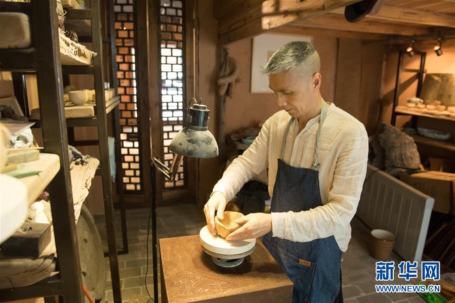 5月8日,項宏金在龍泉青瓷裝飾紋樣研究所捏制器皿。1965年出生的項宏金,被浙江龍泉年輕一代瓷人稱為“項哥”,他從20世紀(jì)90年代開始收集龍泉青瓷標(biāo)本,研究青瓷紋樣。2014年出版著作《龍泉青瓷裝飾紋樣》,次年開設(shè)龍泉青瓷裝飾紋樣研究所,將自己收藏的千余件標(biāo)本跟瓷器愛好者、創(chuàng)作者免費分享。新華社記者翁忻旸攝