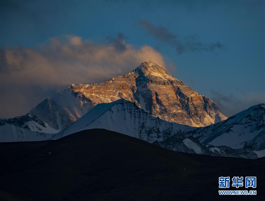 這是4月25日拍攝的夕陽下的珠峰。世界第一高峰珠穆朗瑪峰終年積雪,頂峰云霧繚繞,美不勝收。新華社記者普布扎西攝
