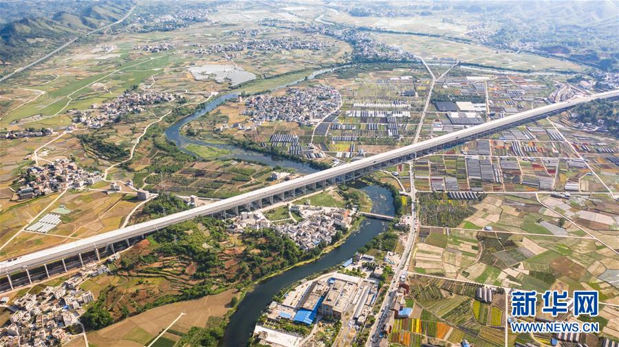 都安高速改擴(kuò)建路段的惠水特大橋(無(wú)人機(jī)照片,5月9日攝)。 新華社記者 陶亮 攝