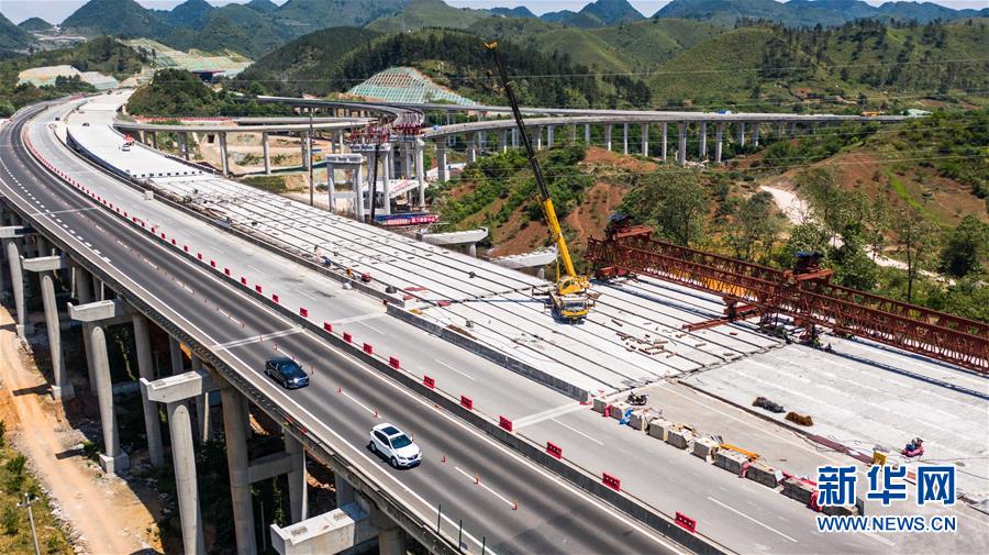 都安高速改擴(kuò)建路段的惠水樞紐(無(wú)人機(jī)照片,5月9日攝)。 新華社記者 陶亮 攝