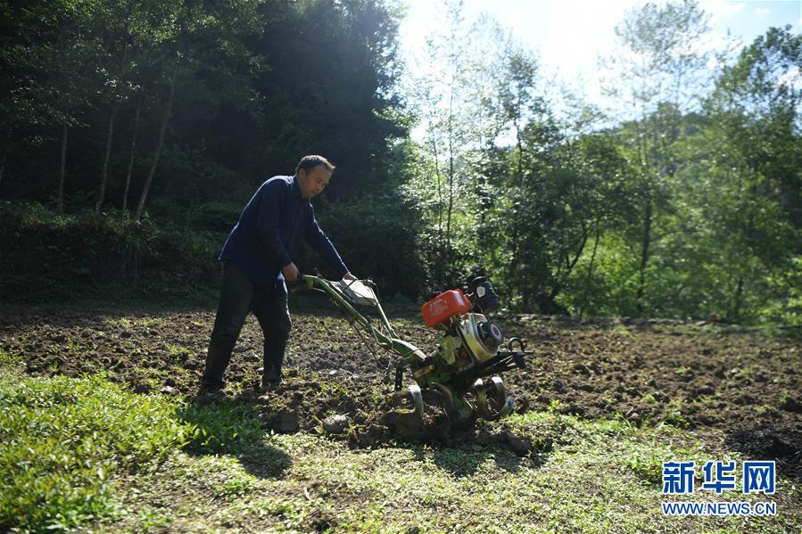 施六金在田間翻耕(4月24日攝)。1973年出生于十八洞村的施六金,由于父親患病很早就放棄學業(yè)和母親扛起了家庭的重擔。為了生活,他還曾遠去東南亞打工。2015年,看到家鄉(xiāng)的變化,施六金回到村里開起了農(nóng)家樂,年度家庭人均純收入也從2014年的1715元增長到了2019年的35696元。2018年,施六金與心愛的人組建了家庭。今年初,施六金與愛人迎來了一個大胖小子?!白鋈俗鍪乱没貓蠛透卸??!笔┝鸾o剛出生的兒子取名施澤恩。新華社記者薛宇舸攝