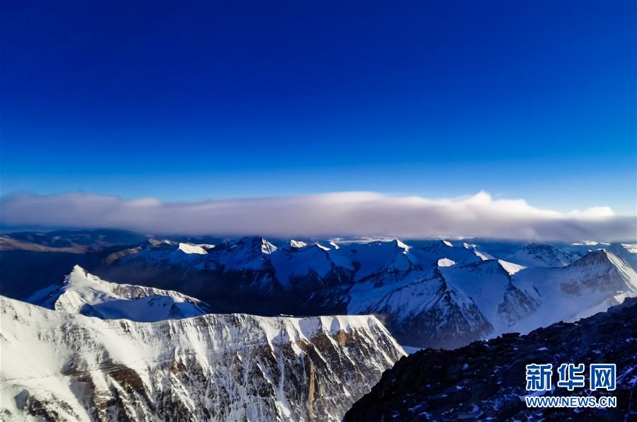 從珠峰海拔7028米以上拍攝的壯美景色(5月11日攝)。從珠峰海拔7028米的一號(hào)營(yíng)地繼續(xù)向上攀登,沿途景色十分壯美。新華社特約記者拉巴攝