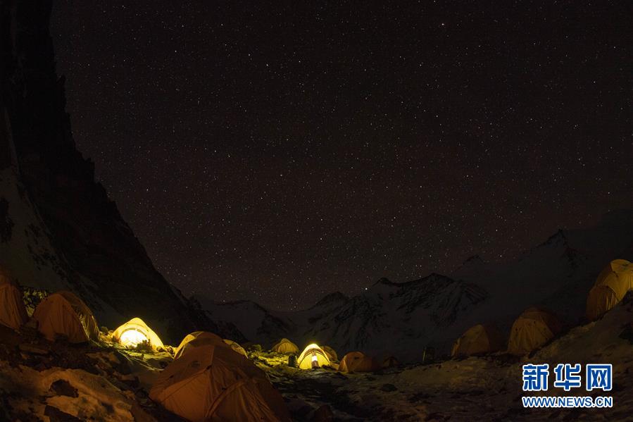 這是海拔6500米的珠峰前進(jìn)營地夜景(5月10日攝)。新華社記者孫非攝