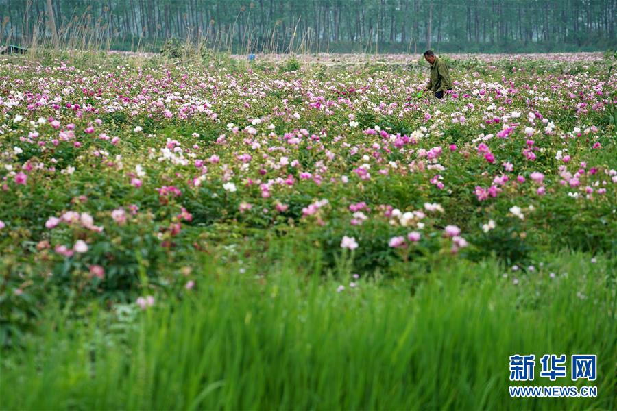 工作人員在金湖縣金燦芍藥園里進(jìn)行農(nóng)業(yè)管理(5月11日攝)。新華社記者韓瑜慶攝