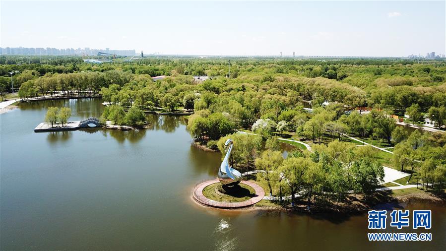 這是5月13日拍攝的太陽(yáng)島風(fēng)景區(qū)(無(wú)人機(jī)照片)。時(shí)下,位于黑龍江省哈爾濱市的太陽(yáng)島國(guó)家級(jí)風(fēng)景名勝區(qū)草青樹(shù)綠,綠意盎然。新華社記者王建威攝