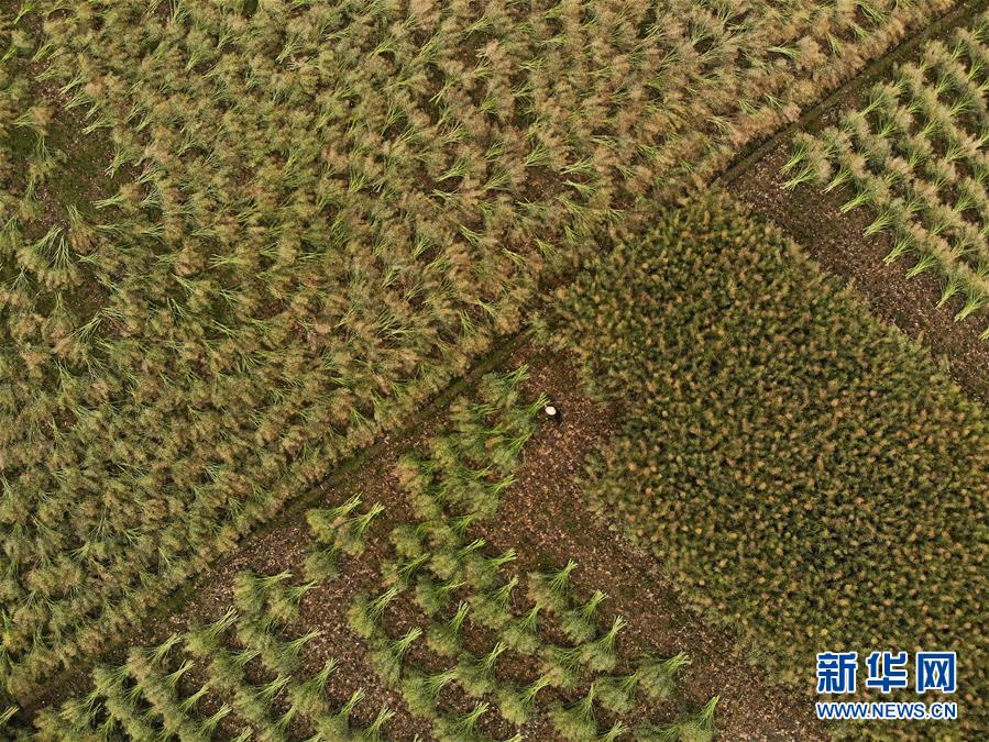 5月13日,在貴州省黔西縣洪水鎮(zhèn)解放村,村民在采收油菜籽(無人機照片)。新華社記者楊楹攝