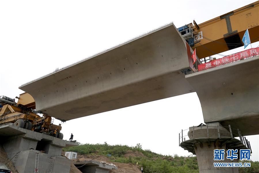 5月13日,運(yùn)架一體機(jī)在位于河南焦作的施工現(xiàn)場(chǎng)進(jìn)行架梁作業(yè)。 當(dāng)日,隨著最后一榀長(zhǎng)24米、重552噸的箱梁架設(shè)就位,太焦高鐵全線橋梁架設(shè)完成。從山西太原到河南焦作的太焦高鐵是國(guó)家規(guī)劃建設(shè)的“八縱八橫”高速鐵路網(wǎng)的重要組成部分,計(jì)劃2020年底建成通車。 新華社記者李安攝