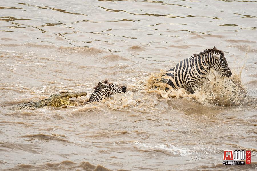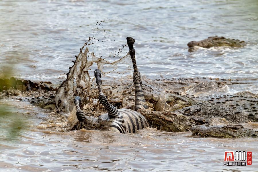2020年5月20日?qǐng)?bào)道(具體拍攝時(shí)間不詳),印度攝影師Nimit Virdi在肯尼亞賽馬拉國(guó)家保護(hù)區(qū)中親眼目睹到鱷魚(yú)獵食的震撼畫(huà)面。