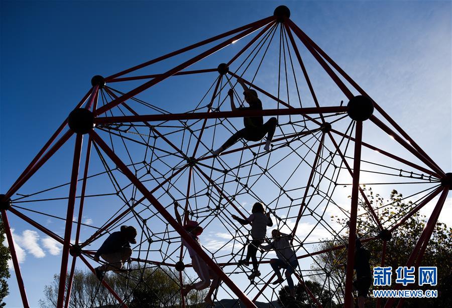 5月14日,孩子們?cè)谑锥蓟蒽`頓郊外公園的游樂(lè)場(chǎng)玩耍。當(dāng)天是新西蘭從新冠疫情防控響應(yīng)三級(jí)下調(diào)到二級(jí)的第一天,經(jīng)濟(jì)活動(dòng)全面重啟,公園等公共設(shè)施首次重新開(kāi)放,中小學(xué)生將于5月18日全面返校復(fù)課。新華社記者郭磊攝