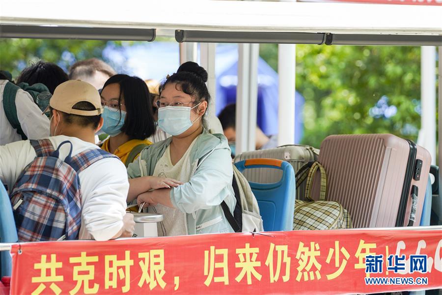 5月15日,在西南大學(xué)的返校學(xué)生報(bào)到點(diǎn),學(xué)生在校內(nèi)轉(zhuǎn)運(yùn)車上準(zhǔn)備前往宿舍。當(dāng)日,重慶西南大學(xué)迎來(lái)疫情以來(lái)首批返校大學(xué)生。據(jù)介紹,按照疫情防控的需要,重慶市高校2020年春季學(xué)期從5月11日起按照“一校一策”原則,實(shí)行錯(cuò)峰錯(cuò)時(shí)分批次有序開(kāi)學(xué)復(fù)課。新華社記者劉潺攝