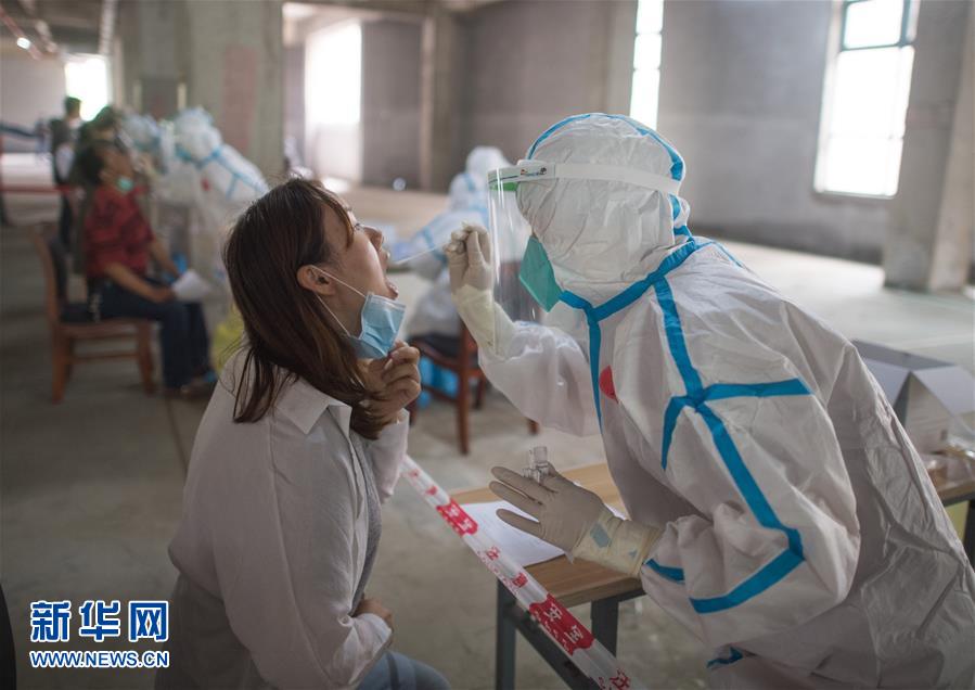 5月15日,在武漢華生漢口城市廣場四期檢測點,工作人員對市民進(jìn)行核酸檢測。近日,武漢將對全市市民有序開展核酸檢測,進(jìn)一步摸清無癥狀感染者底數(shù),進(jìn)而有效管控。新華社記者肖藝九攝