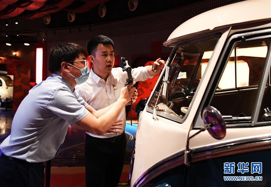 5月18日,在北京汽車博物館,工作人員(左)用講故事的方式通過網(wǎng)絡(luò)直播平臺介紹展品。當(dāng)日是國際博物館日,北京汽車博物館舉辦“帶你穿梭汽車時光”網(wǎng)絡(luò)直播活動,通過網(wǎng)絡(luò)直播平臺對博物館中的藏品車進(jìn)行展示和講解,讓網(wǎng)友足不出戶“云”游北京汽車博物館,了解汽車百年發(fā)展史,感受汽車文化魅力。新華社記者任超攝