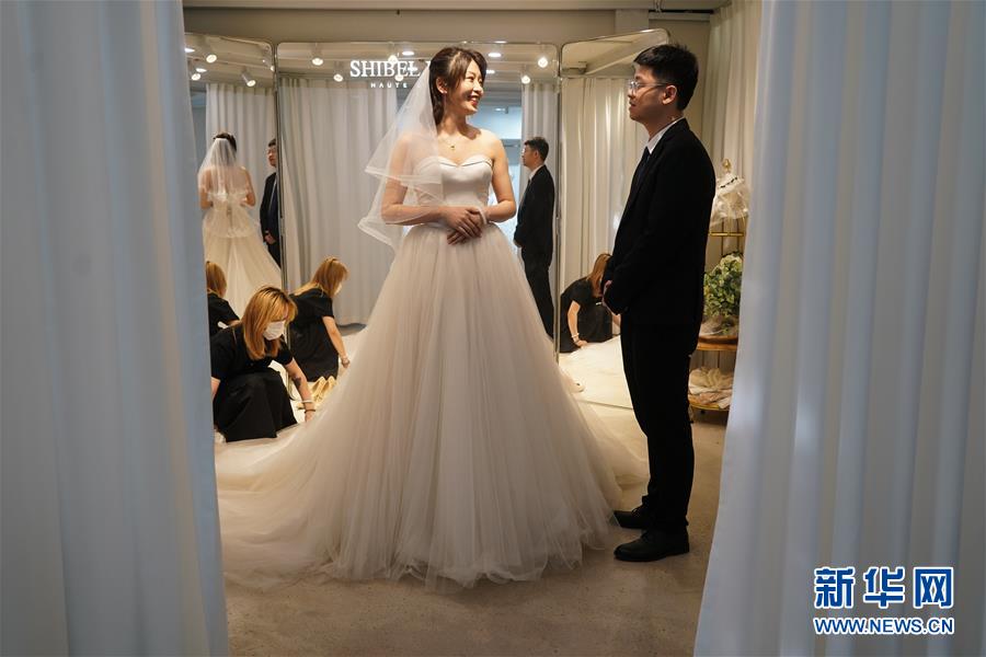 5月19日,江蘇省人民醫(yī)院重癥醫(yī)學(xué)科醫(yī)生王魏魏(中)在試婚紗。她曾在武漢兩家醫(yī)院的重癥病區(qū)奮戰(zhàn)45天。當(dāng)日,15對新人在江蘇南京集體拍攝婚紗照,并將參加5月20日在南京舉行的“今世緣白衣天使集體婚禮”。拍攝婚紗照的部分新人此前因馳援武漢或參加所在城市抗疫工作而推遲婚期。新華社記者季春鵬攝