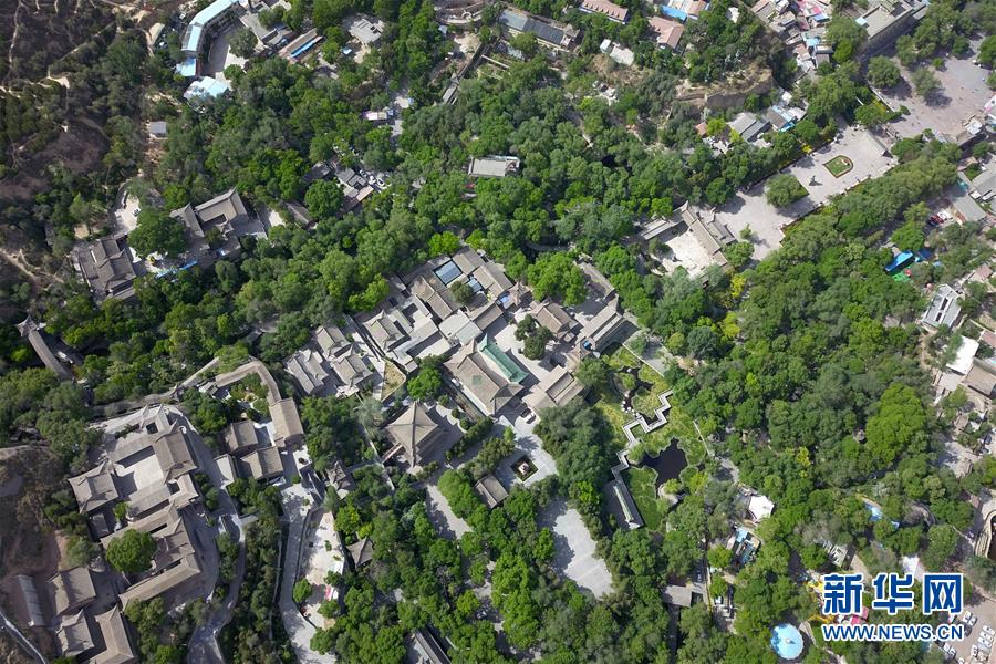 這是5月18日在蘭州市城關(guān)區(qū)拍攝的皋蘭山下五泉山公園初夏景象(無(wú)人機(jī)照片)。